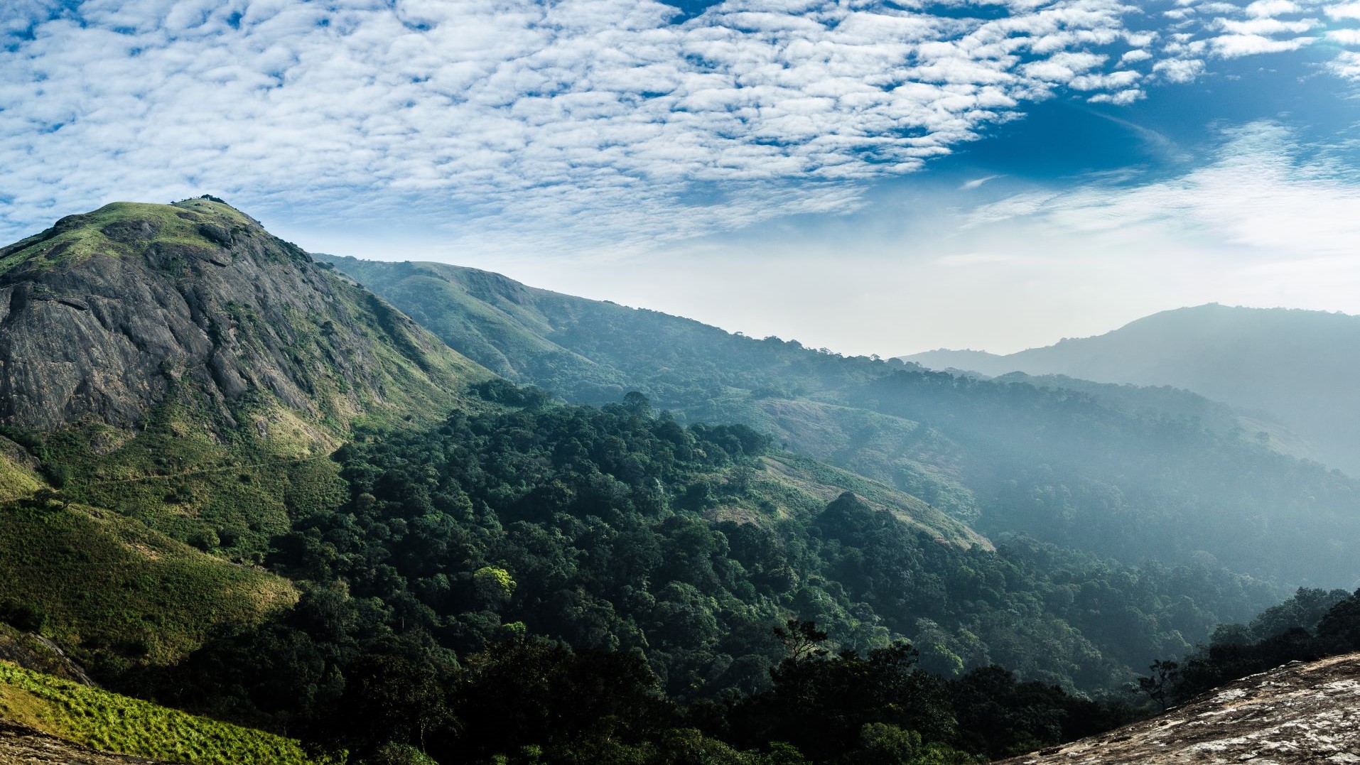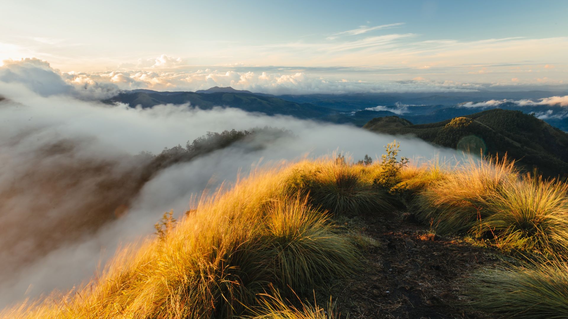 High above the tea gardens, Meesapulimala opens up into rolling grasslands and misty ridges. The air stays cool and the clouds move slowly. Watch the hills appear and disappear through the fog, and let silence do most of the talking.